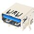 USB 3.0, Type A, Receptacle, Right Angle, High Rise, 12mm Height, 9 Pins, Shell Kink with Nickel Plating, 30uin Gold, Dip 2.4mm, Blue High Temperature...