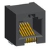 Modular Jack, CAT 3, Low Profile, 6P6C, Right Angle, Through Mount, Without Shield, Snap Peg, 1 Port