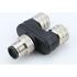 Conn M12 Circular Adapter PIN/(2)SKT 12 POS T Style 3 Port Micro-Change®