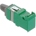 EMI LC Adapter, Angled, Duplex, Green Plastic Body, Zirconia (Zr) Alignment Sleeve, Screw Mount Style, Shutter One Side, Conductive Silicone Gasket