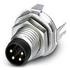 Sensor/actuator flush-type plug, 5-pos., M12, A-coded, rear/screw mounting with M12 thread, with polarity protection, with straight solder connection