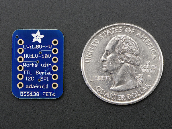 This breakout has 4 BSS138 FETs with 10K pullups. It works down to 1.8V on the low side, and up to 10V on the high side. The 10K's do make the interface a little more sluggish than using a TXB0108 or 74LVC245 so we suggest checking those out if you need high-speed transfer.