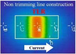 KOAs TLR series uses a special trimming method which not only offers resistance tolerances to 1% but also very high reliability. This method prevents trimming cuts to the element ensuring an even temperature distribution and a smooth current flow. This results in very low inductance values down to ø0.1nH (dependent of size and value).