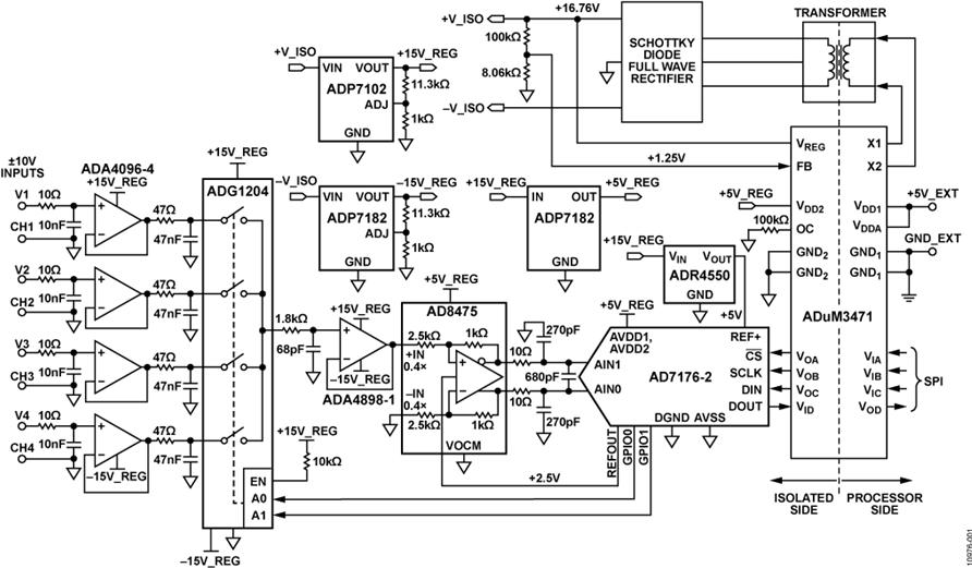 - Circuit is a completely isolated, robust, industrial, 4-channel data acquisition system that provides 16-bit, noise free code resolution and an automatic channel switching rate of up to 42 kSPS. The channel to channel crosstalk at 42 kSPS switching is less than 15 ppm FS (less than -90 dB) because of the unique selection of fast settling components in the multiplexed signal chain