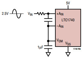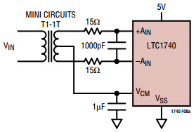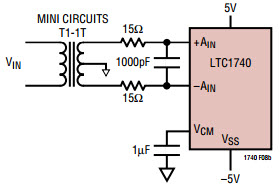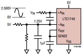 Typical Application Circuit Using LTC1740 14-Bit, 6Msps Sampling ADC for Dual Supply System