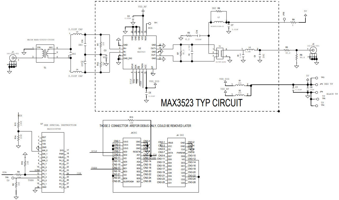 • MAX3523EVKIT#, Evaluation Kit (EV kit) provides the hardware and software graphical user interface (GUI) necessary to evaluate the MAX3523 low-power DOCSIS 3.1 programmable-gain amplifier. The EV kit includes a MAX3523 installed EV board, as well as a micro-USB cable to communicate with a PC