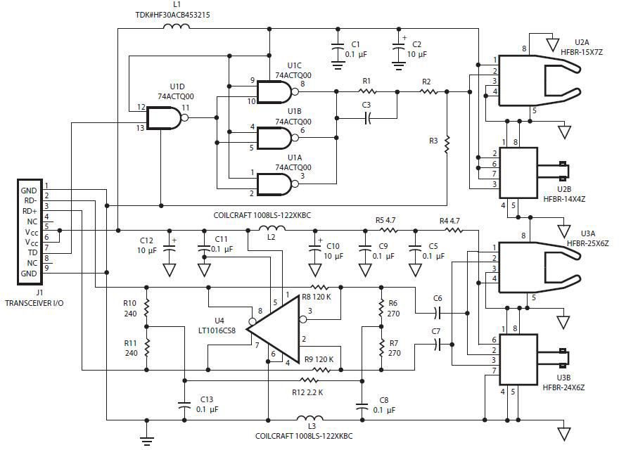 • Solution for dc to 32MBd TTL Data at Distances Between 0 and 1.3kilometers Using HFBR-15X7Z, HFBR-14X4Z Fiber Optic Transceiver