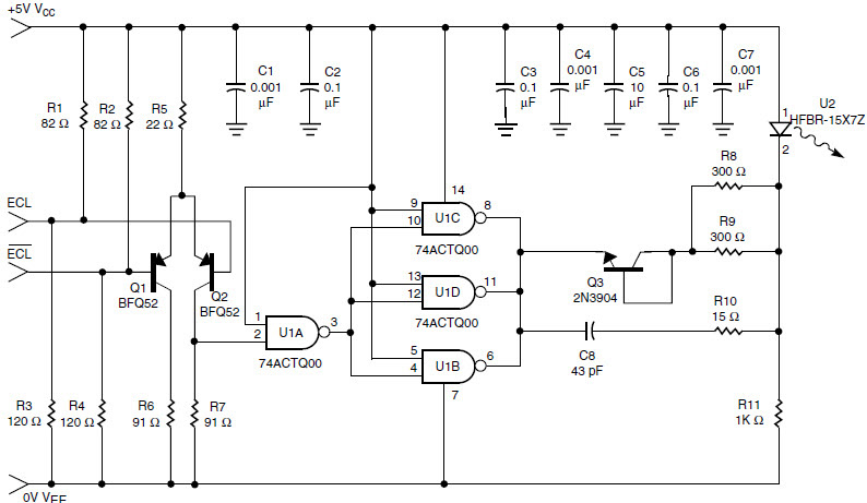 - HFBR-1527Z, +5V ECL Through Hole Transmitter for 1mm Plastic Optical Fiber