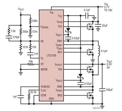 - Typical Application for LTC3785 - 10V, High Efficiency, Synchronous, No RSENSE Buck-Boost Controller. The LTC3785 is a high power synchronous buck-boost controller that drives all N-channel power MOSFETs from input voltages above, below and equal to the output voltage