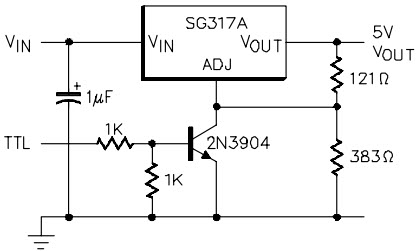 - Typical Application for SG117 5V Regulator with shut-down. The SG117A Series are 3-terminal positive adjustable voltage regulators which offer improved performance over the original 117 design. A major feature of the SG117A is reference voltage tolerance guaranteed within ± 1%, allowing an overall power supply tolerance to be better than 3% using inexpensive 1% resistors. Line and load regulation performance has been improved as well