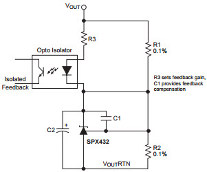 • Typical Application for SPX432 Reference Amplifier for Isolated Feedback in off-line DC-DC Converters. The SPX432 is a 3-terminal adjustable shunt voltage regulator providing a highly accurate 1.24V bandgap reference with 0.5% tolerance. The SPX432 thermal stability, wide operating current (80mA) and temperature range (0 to 105 degree C) makes it suitable for a variety of applications