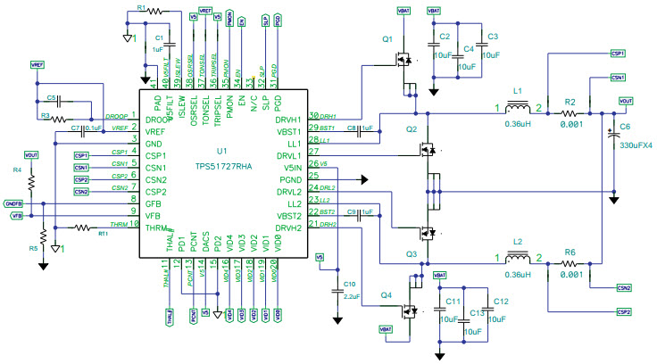 Referenzdesign unter Verwendung des Teils TPS51727RH von Texas Instruments
