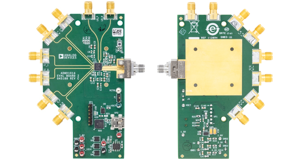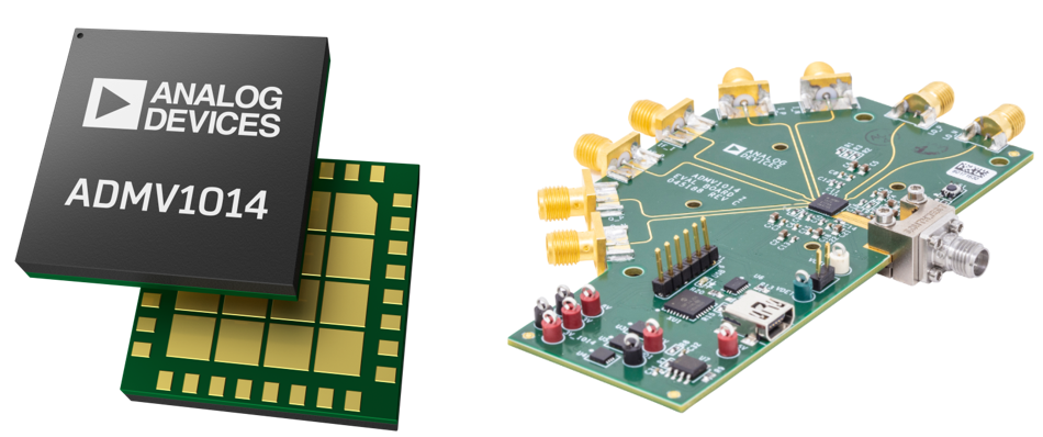 Der ADMV1014 ist ein Breitband-Mikrowellen-Abwärtswandler aus Siliziumgermanium (SiGe), der für Richtfunk-Konstruktionen optimiert ist, die im Funkfrequenzbereich von 24 bis 44 GHz betrieben werden.