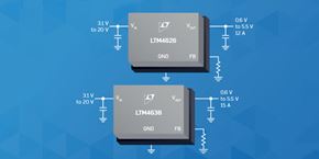 Der LTM®4638 ist ein vollständiger 15-A-Step-Down-Schaltmodus-µModul (Stromversorgungsmodul)-Regler in einem äußerst kleinen BGA-Paket mit 6,25 mm × 6,25 mm × 5,02 mm. Das Paket enthält Schaltcontroller, Leistungs-FETs, Induktor und unterstützende Komponenten. Der LTM®4638 wird über einen Eingangsspannungsbereich von 3,1 V bis 20 V betrieben und unterstützt einen Ausgangsspannungsbereich von 0,6 V bis 5,5 V, eingestellt über einen einzelnen externen Widerstand. Das hocheffiziente Design liefert bis zu 15 A kontinuierlichen Ausgangsstrom. Es werden nur Masseneingangs- und -ausgangskondensatoren benötigt.